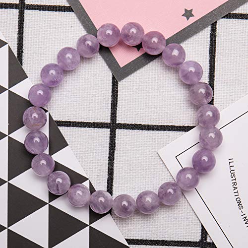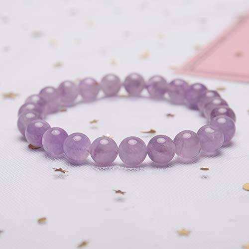 Bivei - Bivei Natural Gem Semi Precious Reiki Healing Crystals Handmade 8mm Round Beads Stretch Bracelet, Metal Stone,