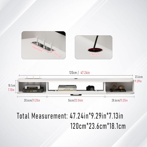 - [Wire Management] Our floating media console with cable holes helps you to get rid of messy cables. The 2 cable holes on the top and bottom for hiding wires keeping your stuff neatly organized and within reach!