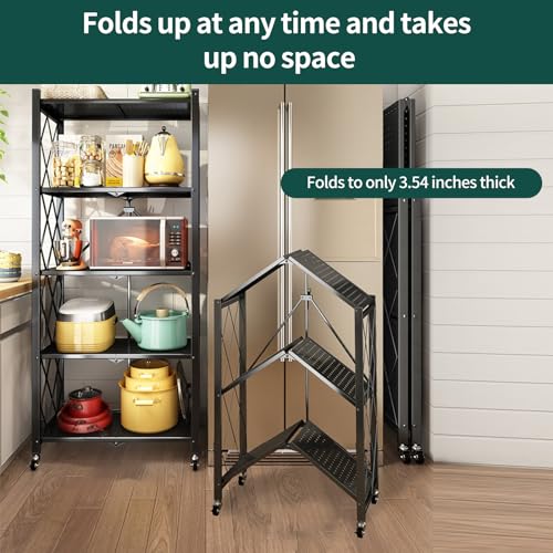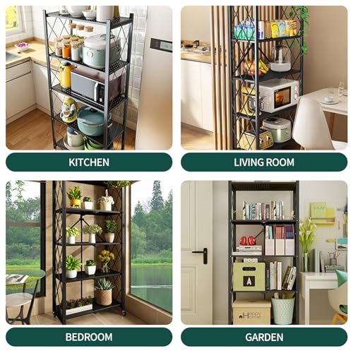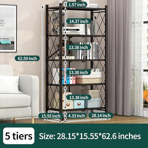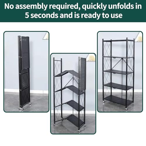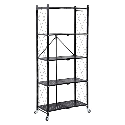 Bixtaneab - ارفف تخزين قابلة للطي من بيكستاناب، ارفف تخزين بدون تجميع مع عجلات، وحدات رفوف معدنية قابلة للطي شديدة التحمل للمطبخ وغرفة النوم والحمام والمكتب (5 طبقات)
