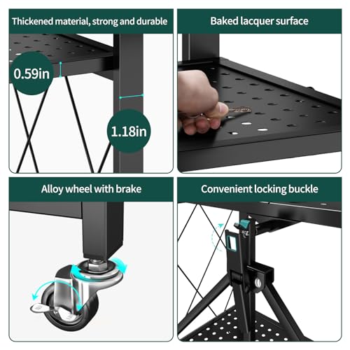 - لا يحتاج إلى تجميع: رف التخزين هذا سهل الاستخدام. يمكن فتح منظم رفوف التخزين القابل للطي في 5 ثوانٍ بدون أدوات. إذا كنت بحاجة إلى التدحرج، فقط قم بتجميع العجلات. تأتي مع 4 عجلات عالمية، 2 مع فرامل و2 بدون فرامل.