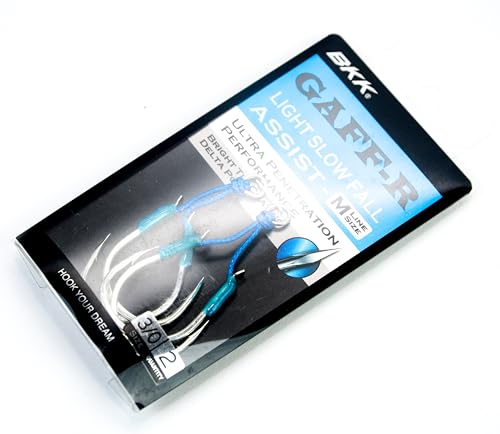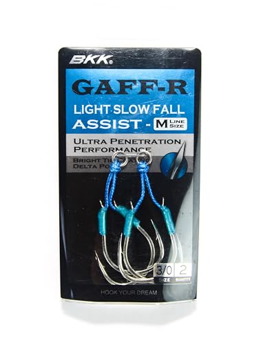 BKK - BKK GAFF-R Light slow fall Fishing Assist Hooks with PE Line for Jigging - 2pcs Saltwater Jig Slow Pitch Jig Hooks Braid Assist Cords- M line size -Size : 3/0
