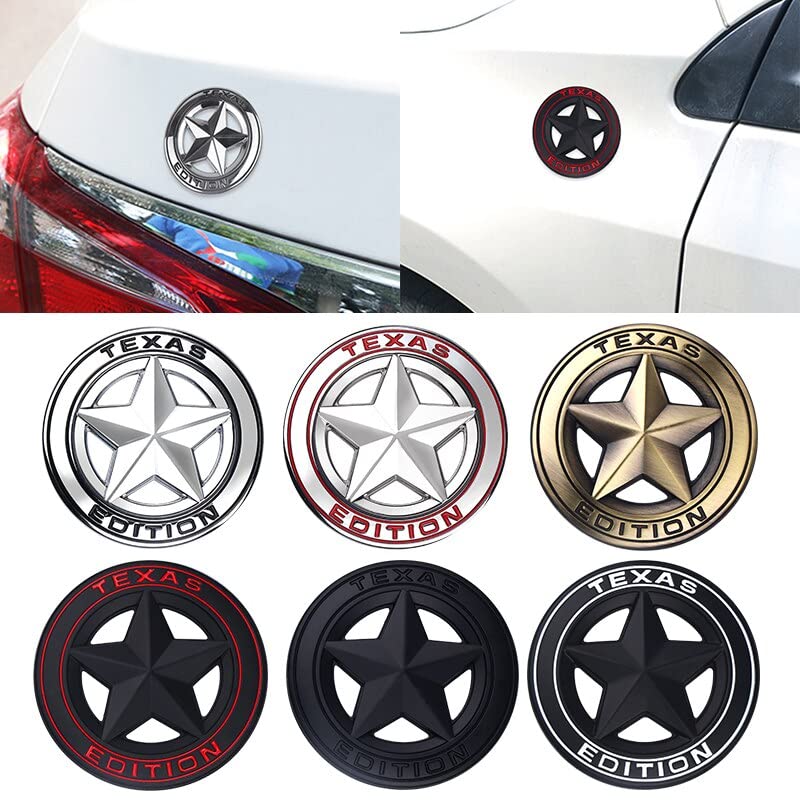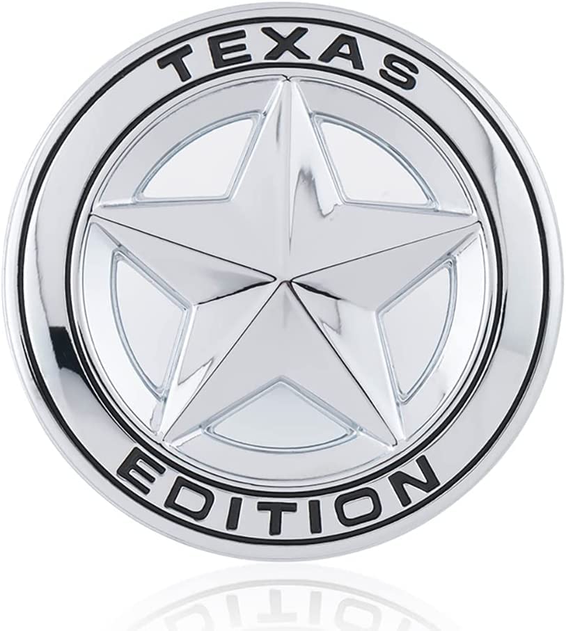 BKN - BKN® 3D Texas Star Edition Metal Car Sticker Logo Emblem Badge Car Styling Sticker for Universal Cars & Bikes, Motorcycle Decorative Accessories | 7.5CM (2.95") (Silver Black)