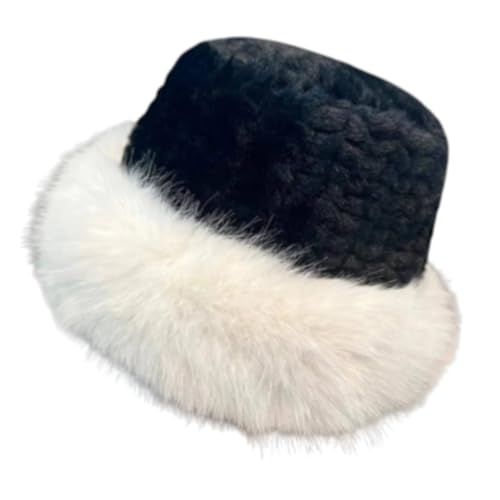 Generic - قبعة شتوية فرو أبيض وأسود، قبعة دافئة مع فرو صناعي ناعم، قبعة أنيقة للشتاء