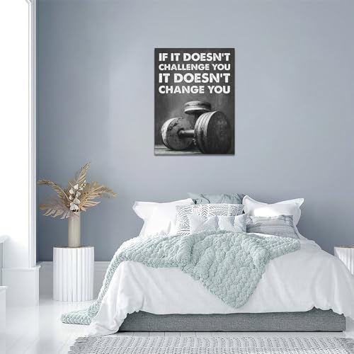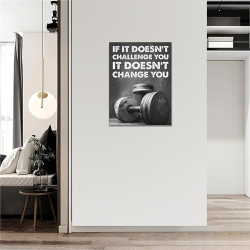 Xgidkew - لوحة فنية جدارية للصالة الرياضية باللونين الأسود والأبيض، لافتة رائعة لصالة الألعاب الرياضية، بوستر صور لديكور الحائط واقتباسات ملهمة للحياة، لوحة قماشية مطبوعة بإطار رياضي تحفيزي للصالة الرياضية