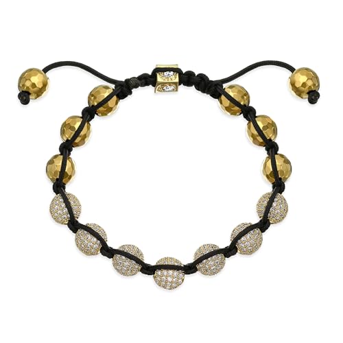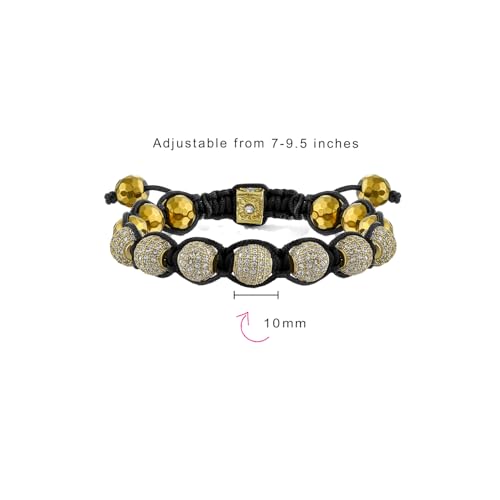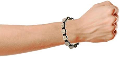 Bling Jewelry - سوار إلهام شامبالا بخرز كريستال بيف أسود وأبيض مناسب للنساء والرجال، سلك قابل للتعديل، 12 ملم