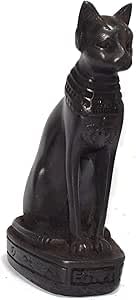 - تصميم فرعوني: تمثال قطة مصرية قديمة مصنوع بدقة من حجر البازلت الأسود، يجسد الفن المصري القديم