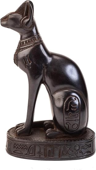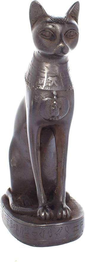 - التفاصيل الفنية: تجسيد دقيق لهيئة القطة المصرية القديمة في وضعية الجلوس المميزة مع تفاصيل نحتية دقيقة