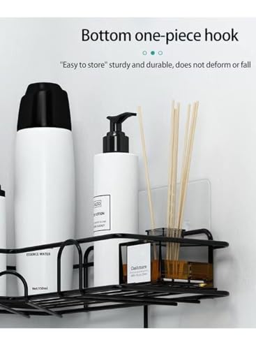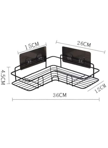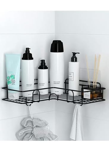 generic - رف زاوية لتنظيم الحمام مع شماعة جانبية بلون اسود