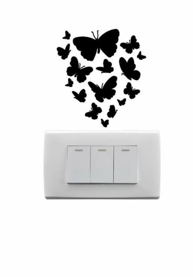 Generic - ملصق فراشات سوداء لمفاتيح الكهرباء، ديكور جداري