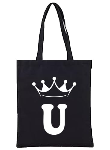 Generic - Black Canvas Tote Bag with Crown (U) Letter, Shoulder Bag