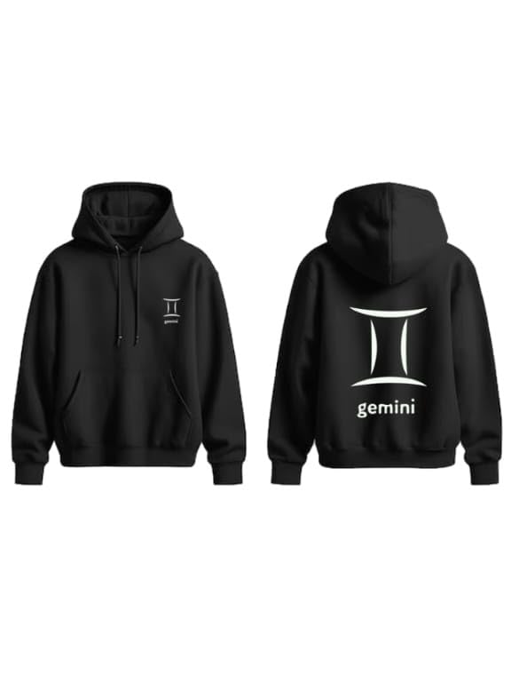 Generic - black cotton hoodie with gemini zodiac white Logo size (M)