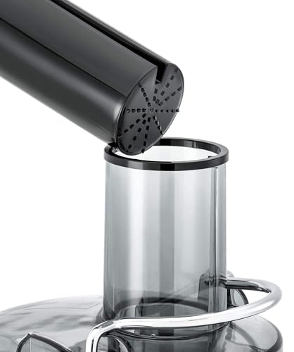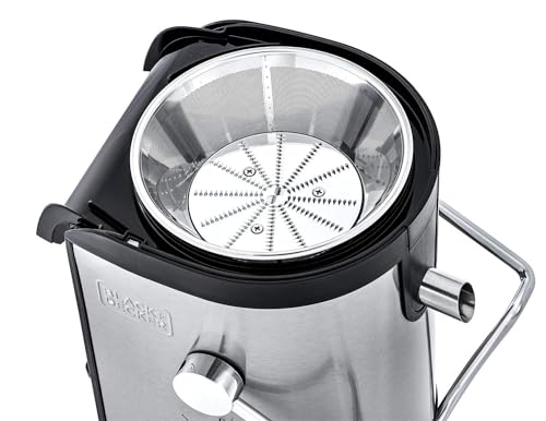 BLACK+DECKER - عصارة من بلاك اند ديكر بقدرة 800 وات وبسعة 1.7 لتر من الستانلس ستيل مع وعاء تجميع العصير، فضي واسود - JE800-B5، مع ضمان لمدة عامين