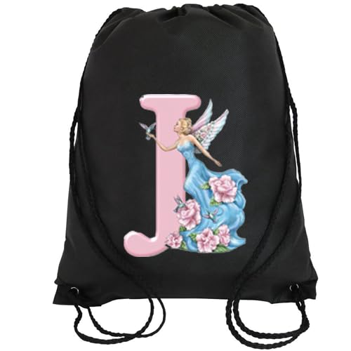 Generic - Black Drawstring Bag with Floral Design, Letter (J),
