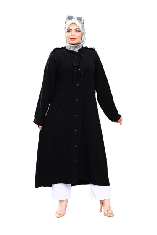 GAMAL SONS FOR ABAYA - تونيك أسود أنيق طويل – تصميم محتشم بأزرار أمامية وربطة عنق GAMAL SONS FOR ABAYA GS-015-32608-Parent