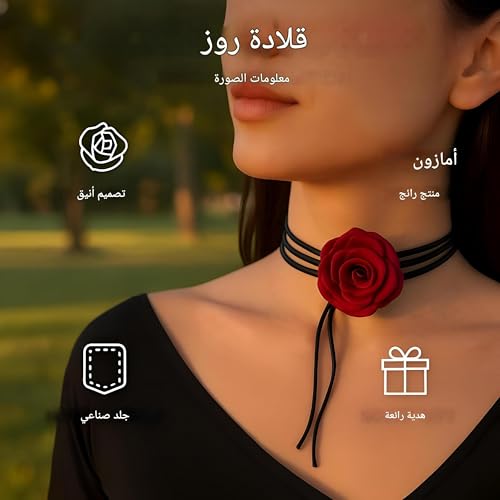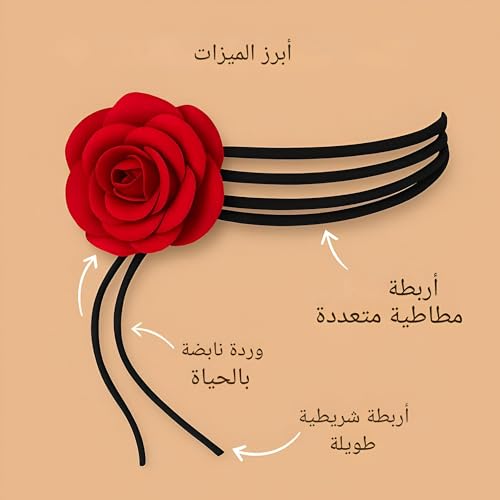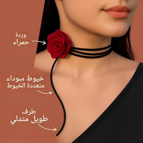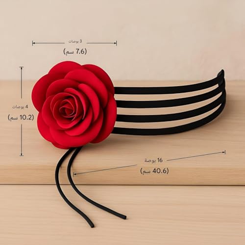Generic - Black flower-multi-thread design with a red rose flower, ideal for formal and informal occasions, 40.6 cm long