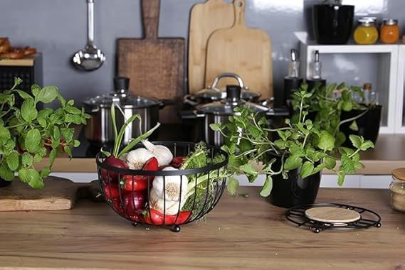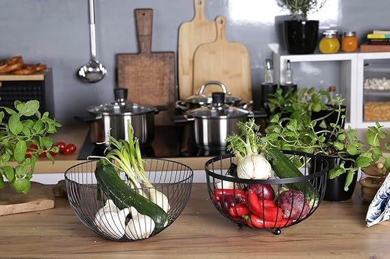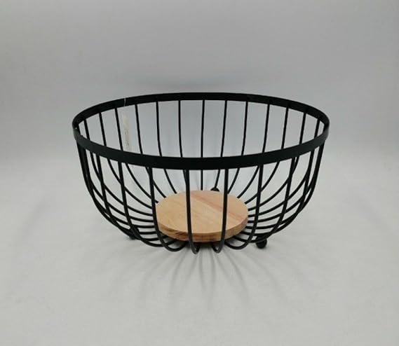 Generic - Black Fruit Basket, Metal Fruit Bowl, Powder Coated Steel, Black, Round, Fruit Basket