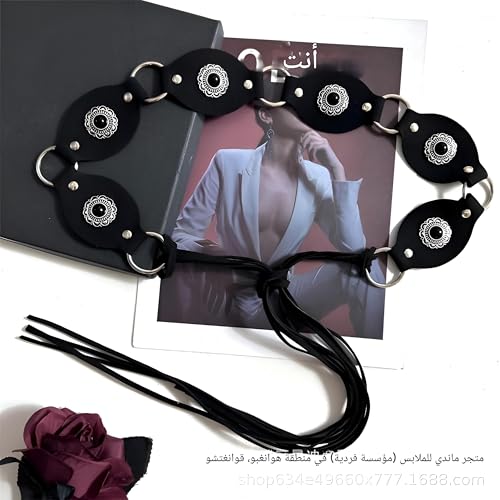 Generic - Black Gem Belt - Luxurious ladies belt with intricate black stone inlays and flowing fringe, ideal for bohemian styles and evening wear.