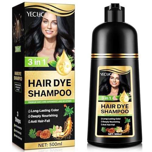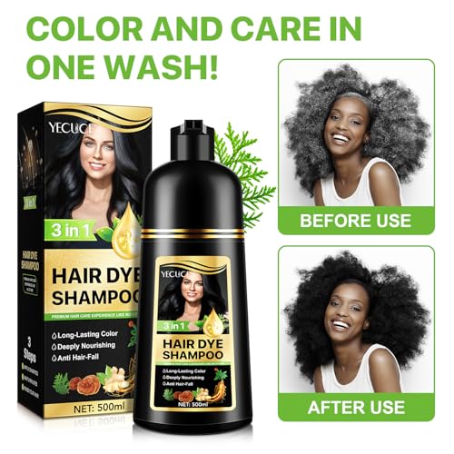Yecuce - Black Hair Color Shampoo 500ml - 3 in 1 Grey Coverage in 5 Minutes | Long-Lasting Color, Deep Nourishing & Anti-Hair Loss Treatment | For Men & Women
