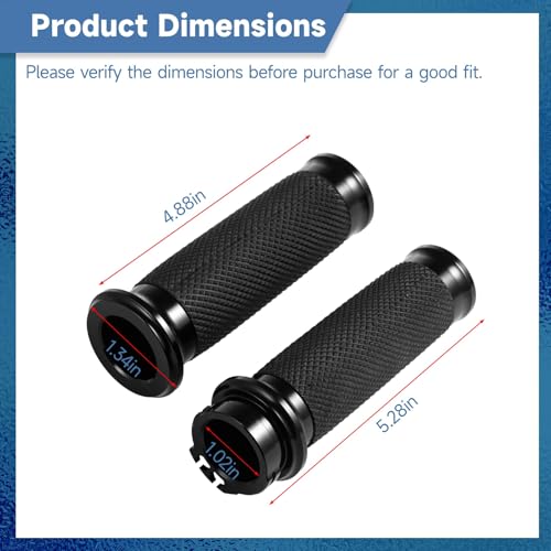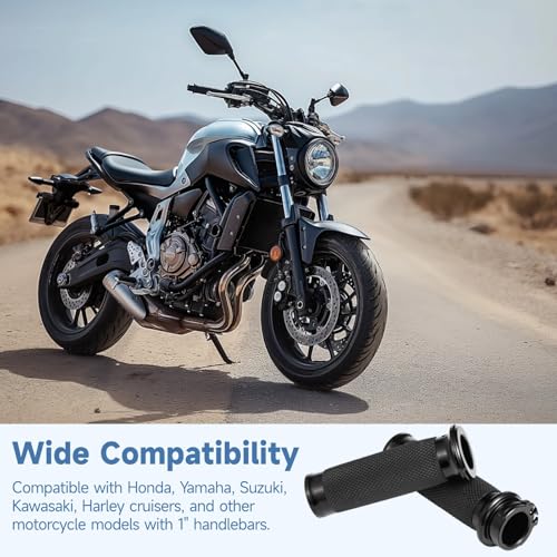 - Wide Compatibility: These motorcycle hand grips are compatible with Honda, Yamaha, Suzuki, Kawasaki, Harley cruisers, and other motorcycle models with 1-inch handlebars. They are not suitable for 1-1/4 inch handlebars or electronic throttles. Warm tips: Please verify dimensions and compatibility before purchase to ensure a perfect fit