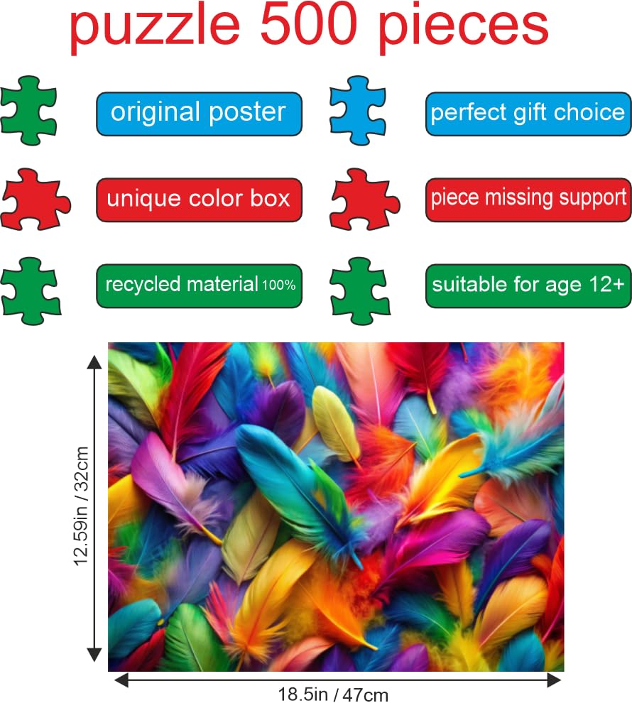 Generic - Black Horse Puzzle Dz211 500 Pieces Colorful Feather