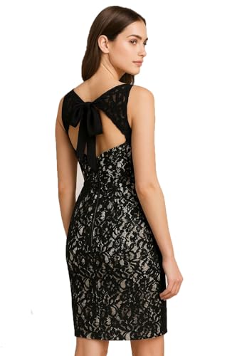 Generic - Black Lace Dress with Nude Lining - Open Back with Bow - Elegant Party & Evening Wear - Size S