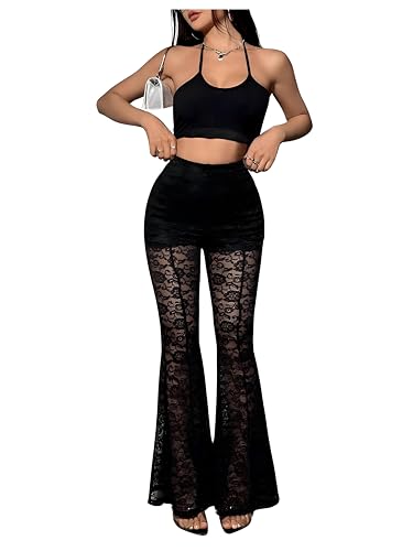 Generic - Black lace-trimmed flat trousers-high-waisted and transparent trousers for evening, modern and casual fashion-from 50k to 85k -