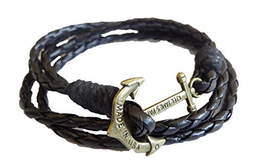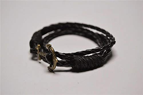 Other - Black Leather Bracelet Clasped with Metallic anchor Clasp Bronze Color Item No 704 - 1