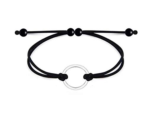 Other - Black Leather Silver Circle Charm Bracelet for Unisex