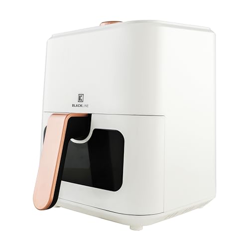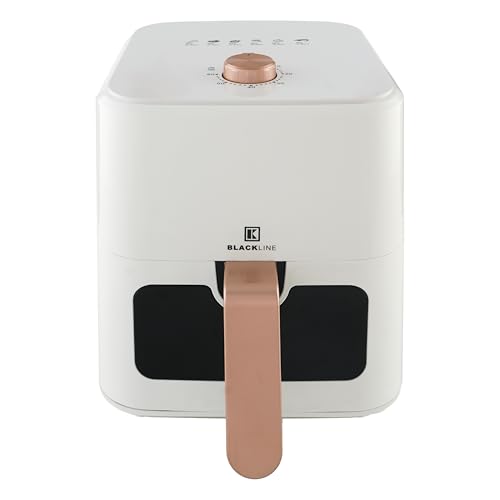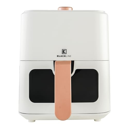 Black Line - قلاية هوائية سعة 4 لتر وطاقة 1350 وات وتايمر 60 دقيقة وطلاء غير لاصق ودوران هواء سريع وطهي صحي خالي من الزيوت ودرجة حرارة قابلة للتعديل، سهلة التنظيف مع صينية شواء متضمنة من بلاك لاين
