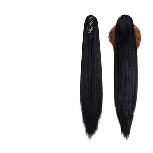 Generic - ذيل حصان صناعي طويل مستقيم، أسود، بمشبك، شعر مستعار، للنساء
