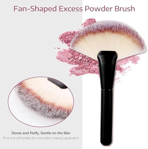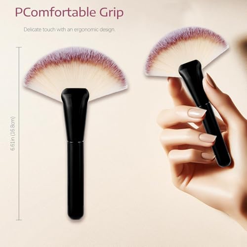 Generic - Black Makeup Brushes with Wood Handle - Large Fan Brush and Powder Foundation Brush for Cosmetics, Ideal for Liquid and Powder Applications-1pc