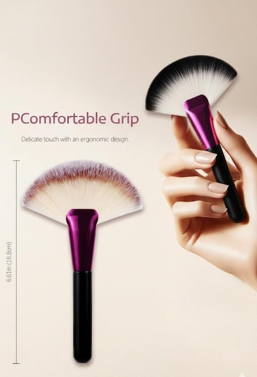 Generic - Black Makeup Brushes with Wood Handle - Large Fan Brush and Powder Foundation Brush for Cosmetics, Ideal for Liquid and Powder Applications-1pc-pinck metal mic black color