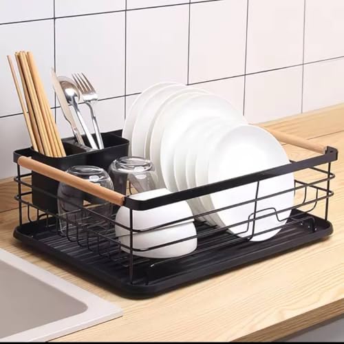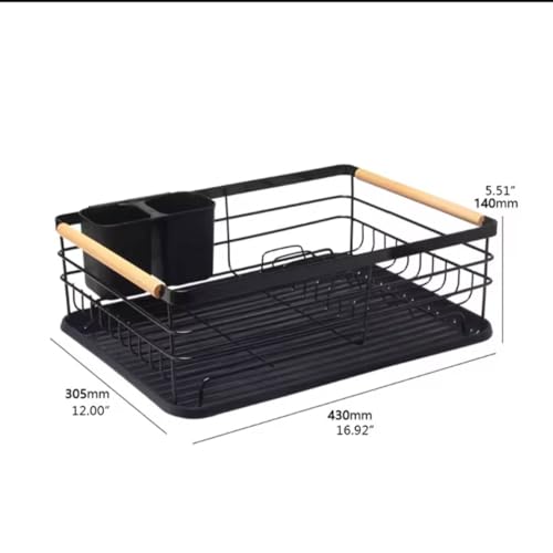 Generic - Black Metal Dish Drying Rack, Multifunctional Kitchen Utensil Holder with Drain Tray, 43x30.5x15cm, Utensil Holder