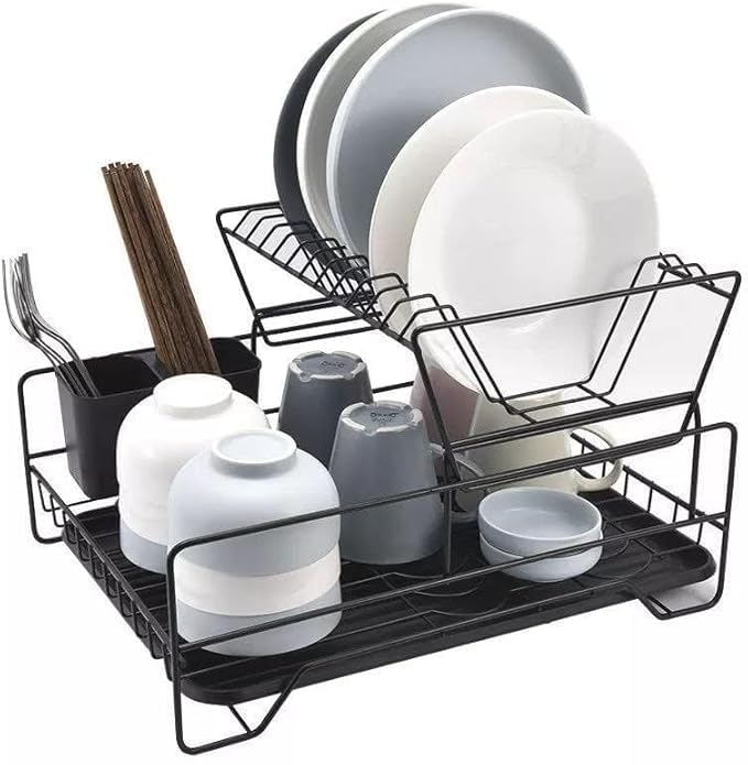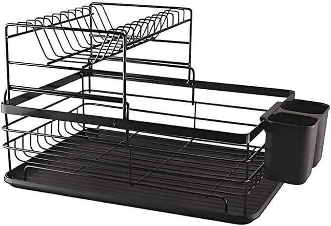 Generic - Black Metal Dish Rack Dish Drying Rack Organizer Large Antibacterial Kitchen Supplies Organizer for Kitchen Utensils and Dishes on Kitchen Counter