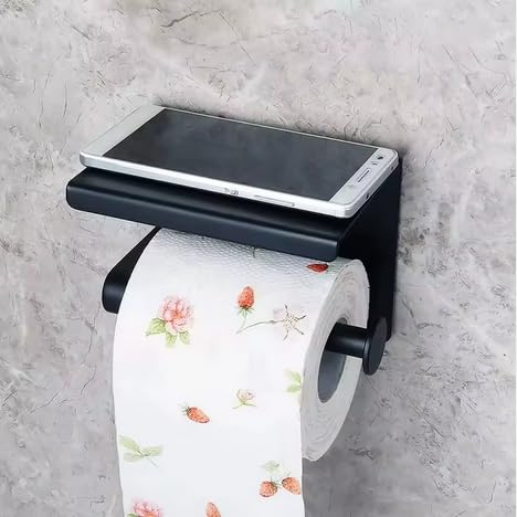 - التصميم العصري: حامل ورق مرحاض معدني أسود أنيق مع رف علوي مدمج لحمل الهاتف المحمول بأمان