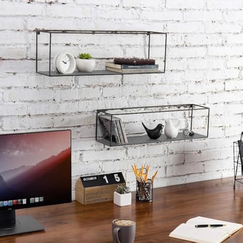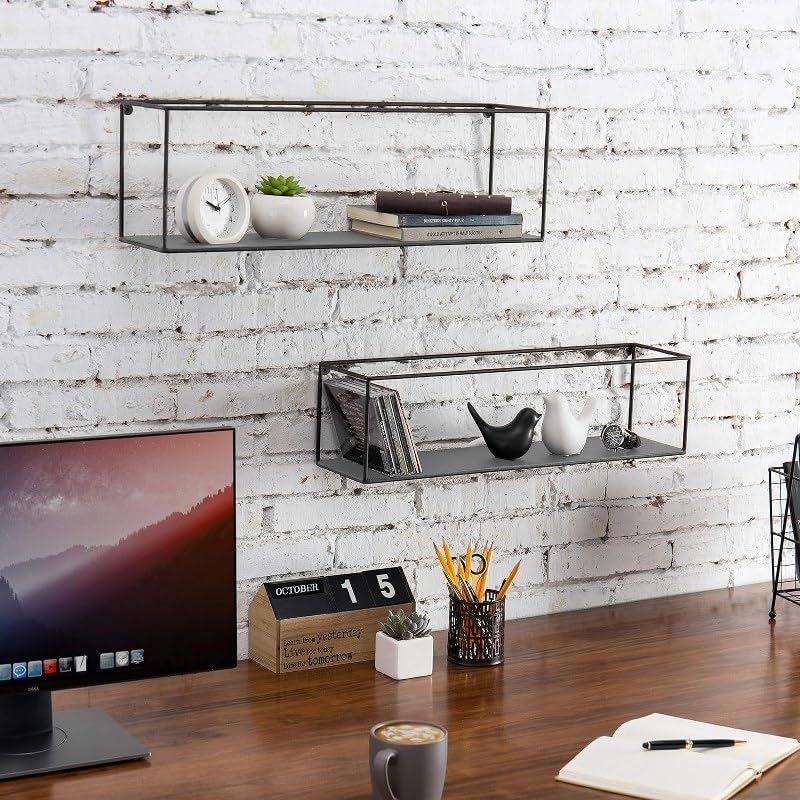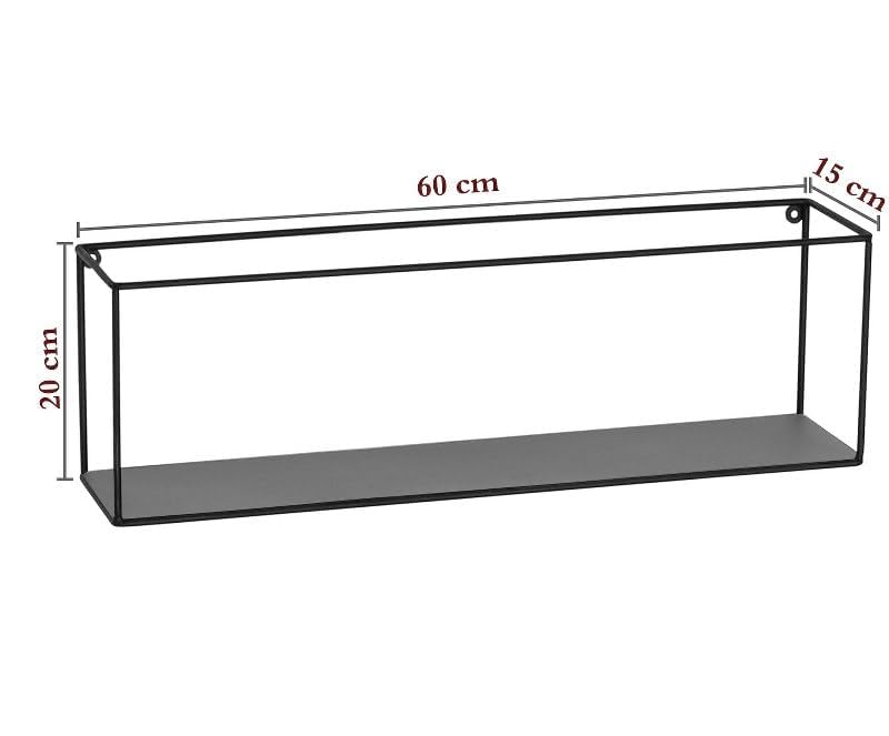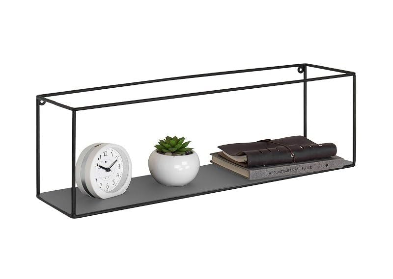 Home Gallery - رف عرض معدني مستطيل يثبت على الحائط بلون أسود مقاس 60×20×15 - رمادي، معدن خشب