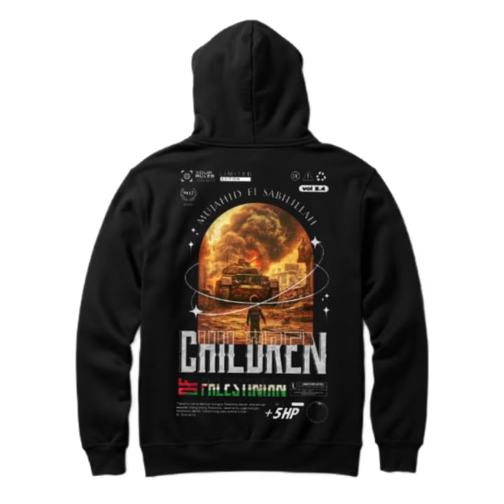 Generic - Black oversize Youth hoodie back art over size TEXT job work (childeren palestine)113