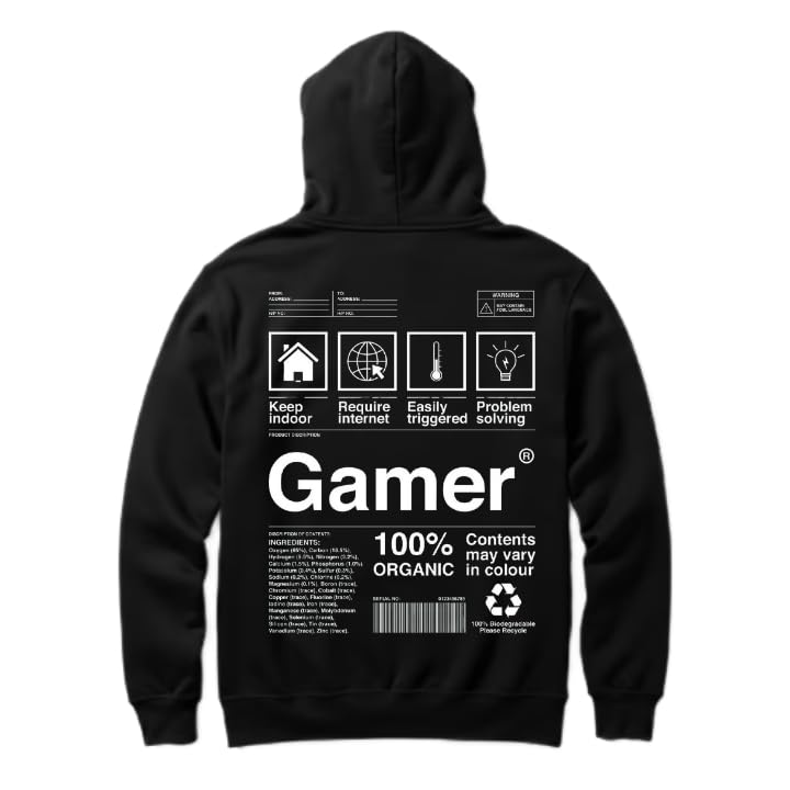 Generic - Black oversize Youth hoodie back art over size TEXT job work (gamer) 38
