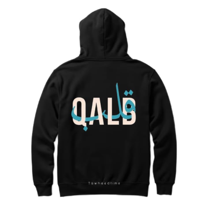 Generic - Black oversize Youth hoodie back art over size TEXT job work (qalb) 78 \