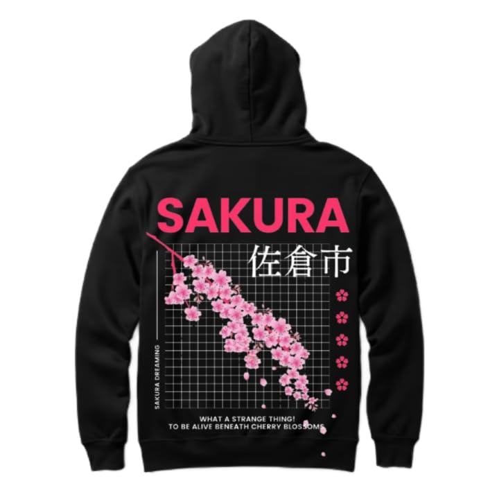 Black oversize Youth hoodie back art over size TEXT job work (sakura) 71