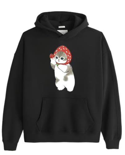 Generic - Black oversize Youth hoodie over size kitty kitten kawaii cute cat 103