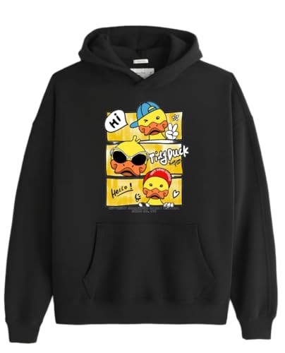 Generic - هودي اسود كبير الحجم للشباب بمقاس كبير قطة كيتي كيتي كاواي قطة لطيفة 126 بطة