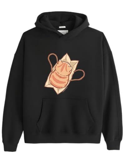 Generic - هودي اسود كبير الحجم للشباب بمقاس كبير قطة كيتي كات كاواي لطيف 52