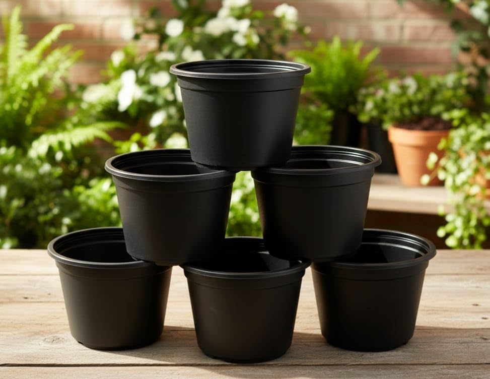 - MULTI-USE KIT: Includes 6 pieces of black planting pot, 8" in diameter, ideal for indoor and outdoor plants, herbs and flowers
