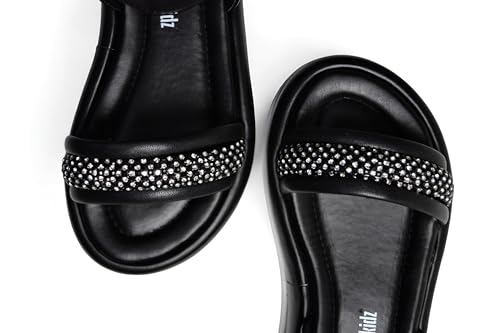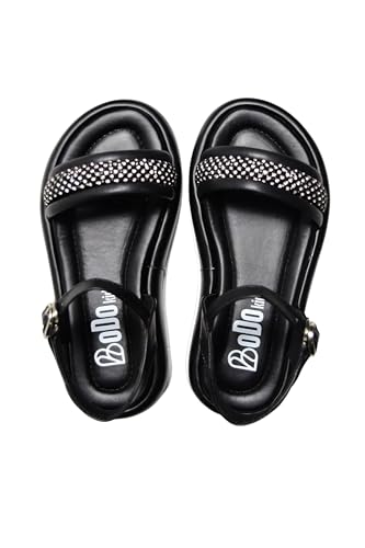 BODO - Black Sandals for Girls Stylish Design Glitter Accents Adjustable Strap Comfort Sole for Occasions and Everyday Use