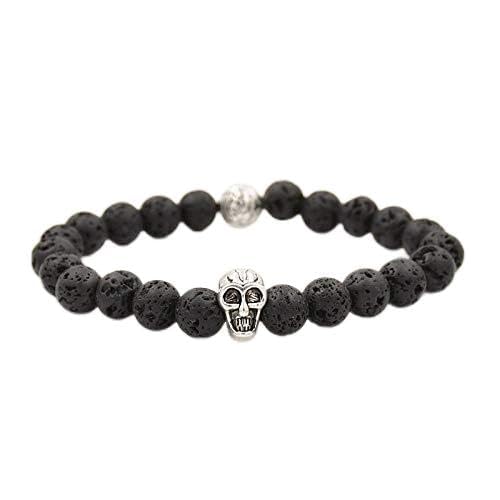 Generic - سوار الجمجمة حجر الحمم للرجال و النساء الحجر الطبيعي لون اسود