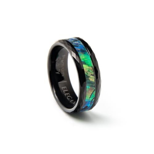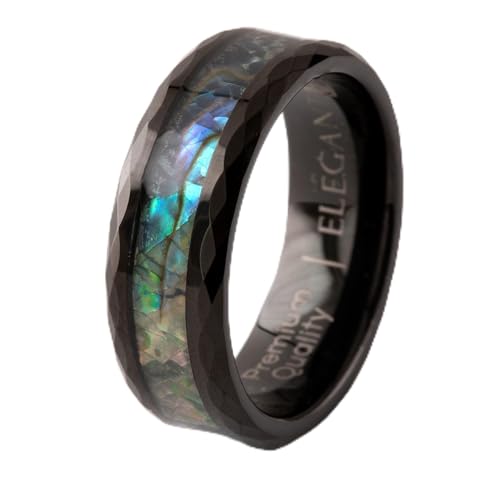 Elegant Bear - Black Tungsten Carbide Ring inlaid with abalone shells A138