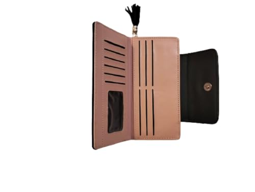 Generic - BLACK WALLET WITH ZIPPER AND TASSELS