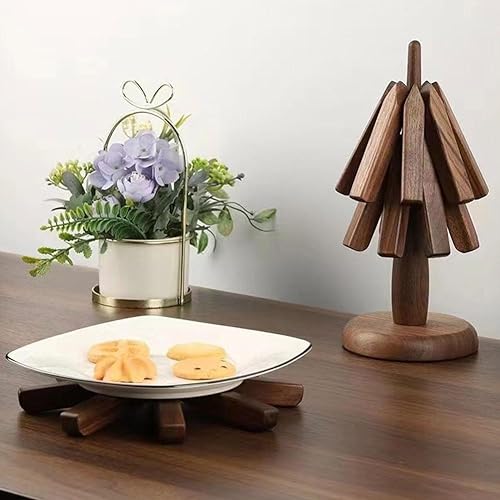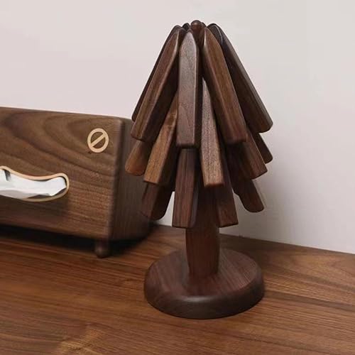 LWPEM - Black Walnut Wood Table Mat, Tree Art for Wood Coasters Set of 3, Housewarming Gift Wood Placemats, Wooden Trivets for Hot Dishes Tree Shape Trivet Set Coaster, Foldable Potholder Easy Storage