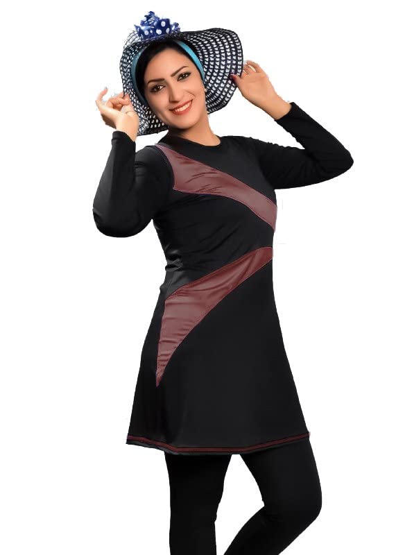 Generic - بدلة سباحة حريمي بلون اسود 3 قطع (فيست طويل وبنطلون وبونيه)